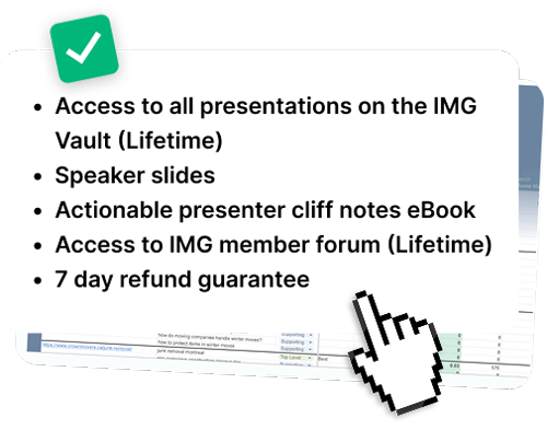 GET LIFETIME ACCESS TO THE ENTIRE 2 DAY EVENT - $97Top SEO Pros in the industry are teaching our members their exact systems to grow their presence in search engine results. Join thousands of SEOs transforming their businesses.